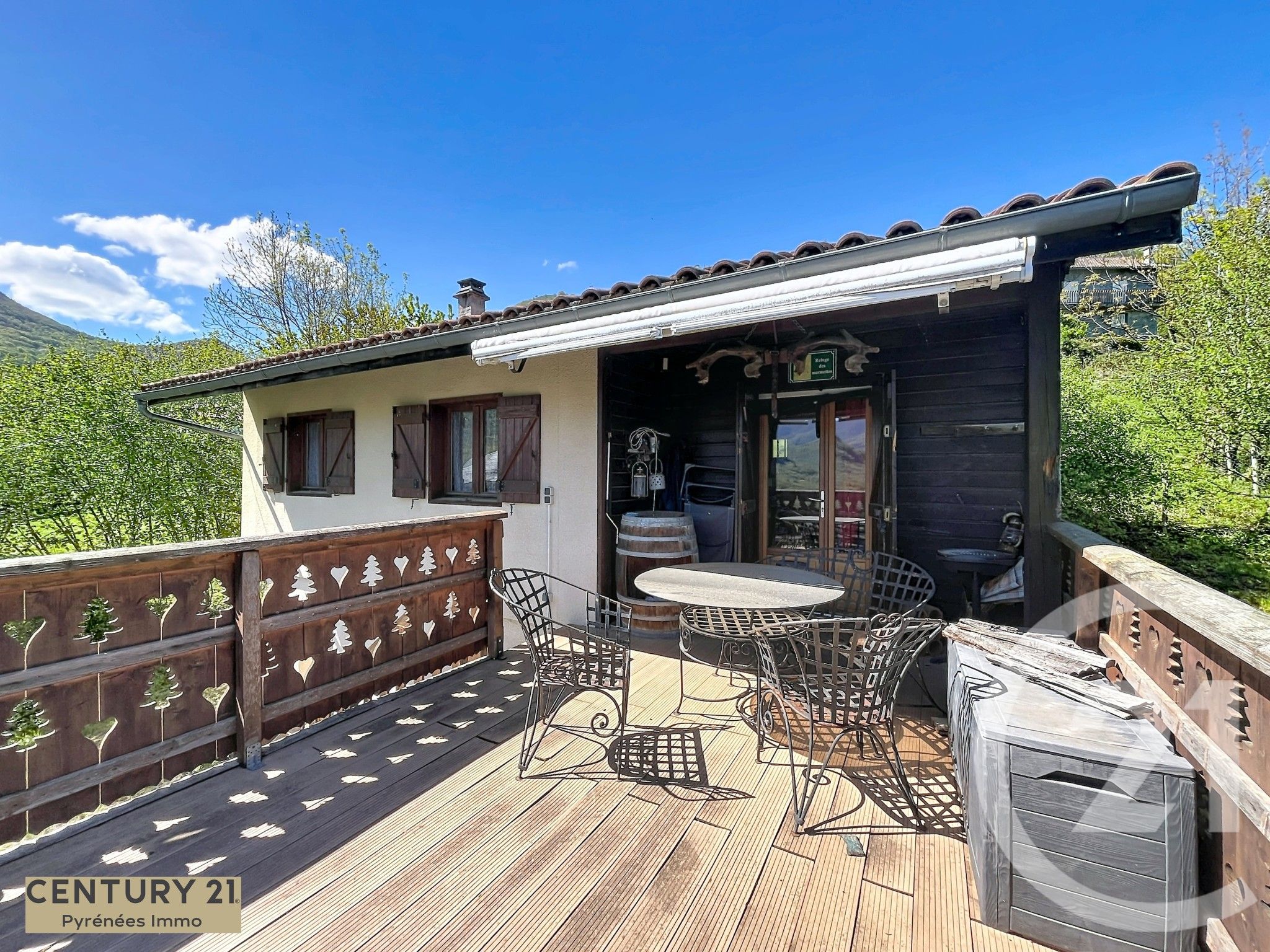 À l'étage, dès les premiers pas, une belle surprise vous attend, une terrasse exposée plein sud, offrant une vue imprenable sur les montagnes et le château de Bramevaque. Un décor rare, presque suspendu !